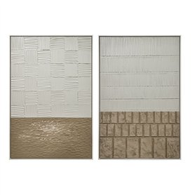 Cadre Home ESPRIT Blanc Doré Naturel Abstrait Moderne 100 x 3,5 x 100 cm (2 Unités)