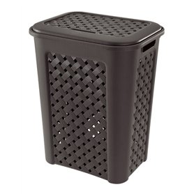 Panier à linge rectangulaire Arianna ajouré en plastique. Capacité 50 litres. Couleur marron. Lavable à l'eau courante. Recyclable.Nom du produit : Tontarelli Arianna Panier à Linge, Modèle Ajouré, Plastique, WengeMarque : KreherCapacité : 50 litresMatériau : PlastiqueCouleur : Marron